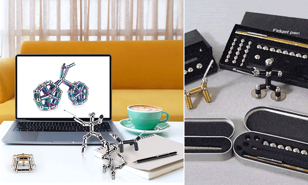 Tired of gel ink pen with only one shape? This magnetic pen can change shape conforming to your imagination anytime, anywhere, like swords, robots, chairs, bicycles etc. This magnetic fidget toy pen is a cool gadget for teens. Adults will also fall in love with it for the stress relief effect.